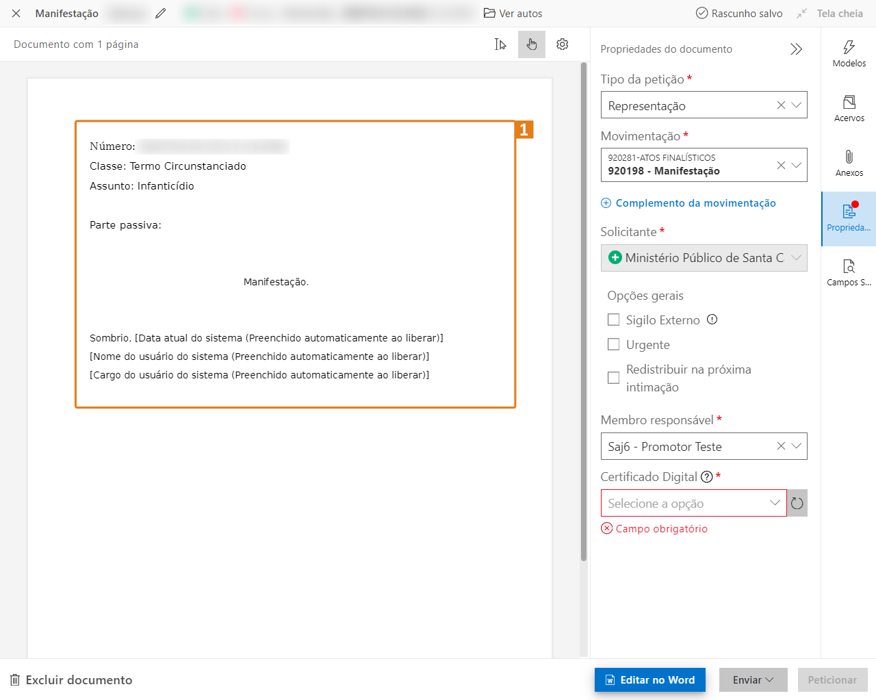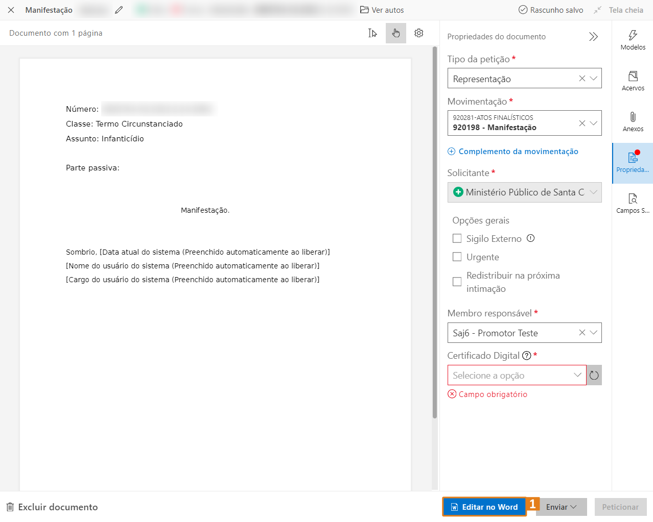 [SAJ Online] Como editar campos de texto no Word Online do SAJ Ministérios Públicos?Versão do sistema: 24.02.04-00