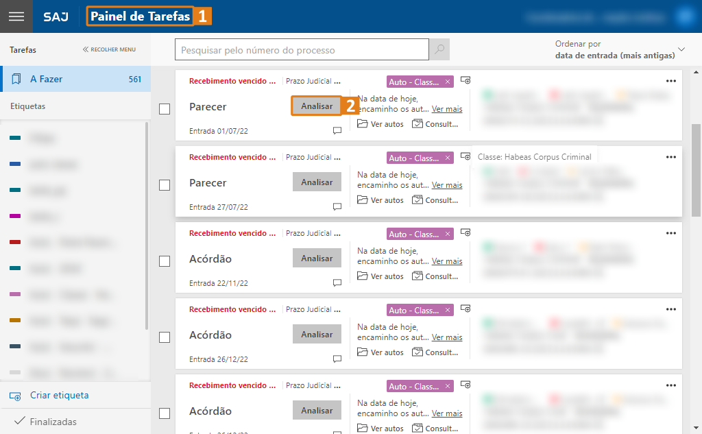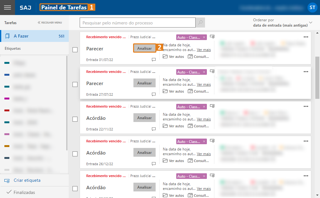 Artigo publicado em: 13 de agosto de 2024O SAJ conta com a análise de tarefas em lote, por meio dessa funcionalidade é possível aumentar a eficiência do trabalho operacional, pois elimina a necessidade de retornar ao painel após cada análise.